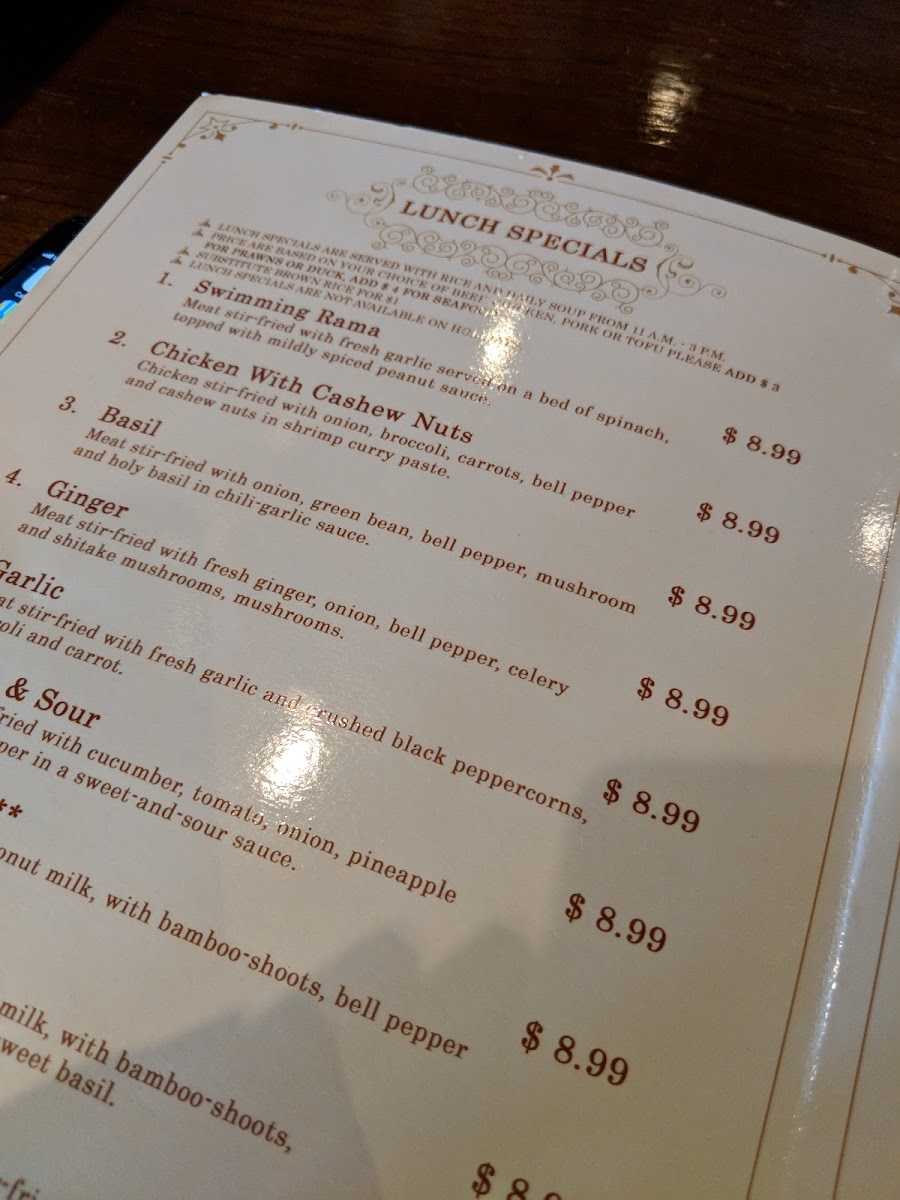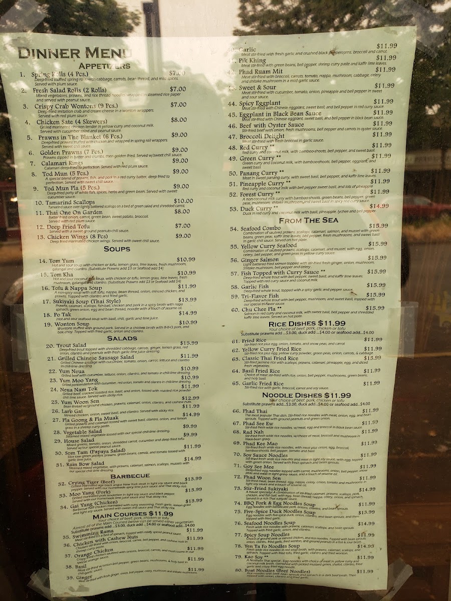 Overall, the menu invites you to explore traditional Thai flavors served in a setting that feels welcoming and unpretentious, where the focus is on straightforward, well-prepared food that fits smoothly into everyday dining occasions.